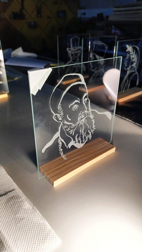 O professor António Pires de Matos e o professor Fernando Quintas, da VICARTE, trouxeram-nos o desafio de fazer gravação detalhada com laser em vidro.