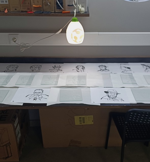 A ideia passava por representar no vidro desenhos feitos à mão de personalidades italianas. Após a gravação, esta representação teria de ter qualidade e opacidade suficientes para gerarem sombras dinâmicas criadas com a projeção de luz.